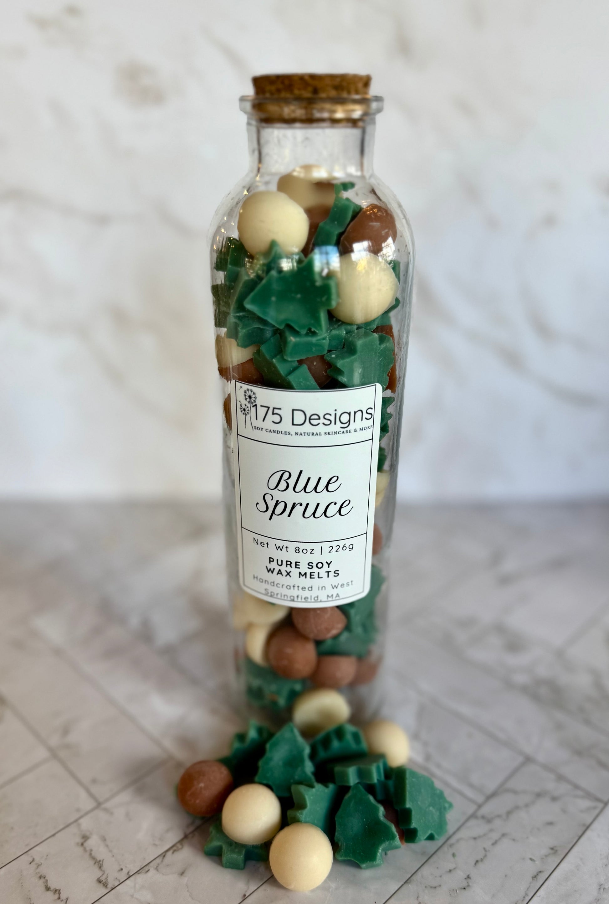 Blue Spruce Soy Wax Melts – 8oz Glass Jar with Cork